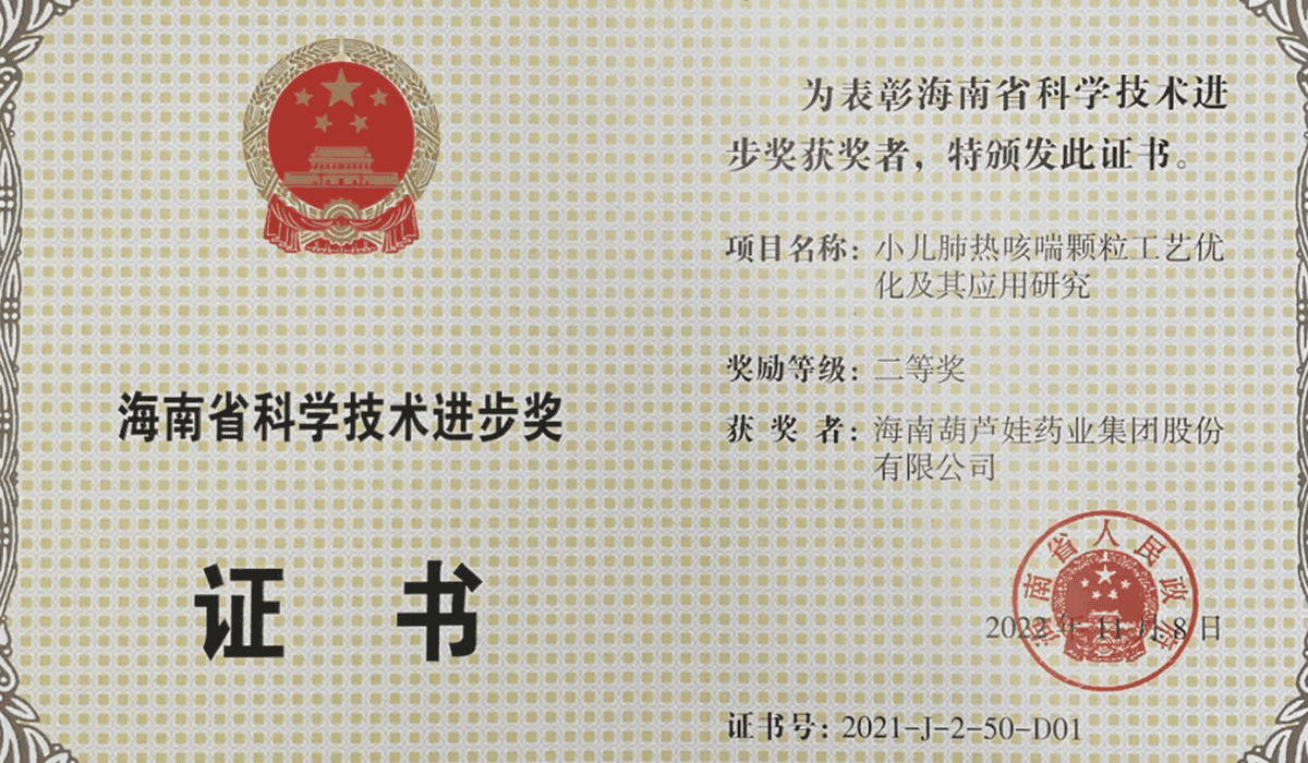 红宝石9999hbs(中国)股份有限公司申报的专利“克咳片及其制备方法”荣获 第四届海南省专利奖金奖